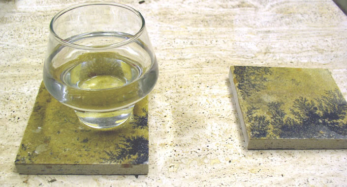 Beneath the unchanging stone face of these natural sandstone beverage coasters, you can find an incredible piece of the earth geological history. Painted by nature against the gentle backdrop of a dessert landscape, you will see bright contrasting patterns of color. These are the real, dendritic, fossilized imprints of creatures that lived on the earth millions of years ago. Each coaster is different, with its own unique snapshot of the ancient world. Some contain vivid plant images, others have tiny shells, or microorganisms, all ready for you and your guests to marvel over.