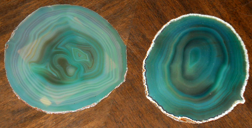 the medalion agate centerpiece of each coaster. The swirling sea of hue and tone creates a tempestuous whirlwind of merging patterns that are almost mesmerizing.