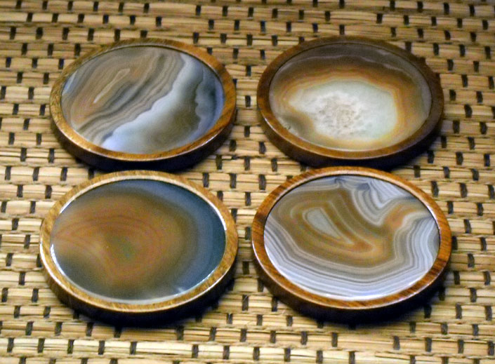 Each coaster is crafted from unique agate gemstone imported from Brazil