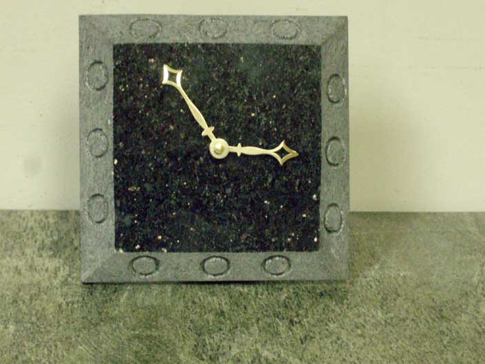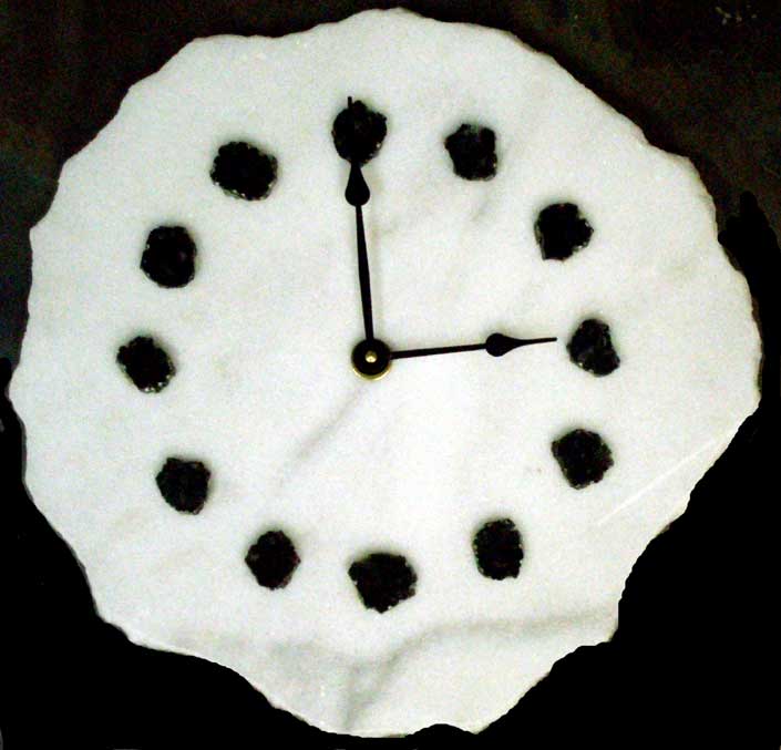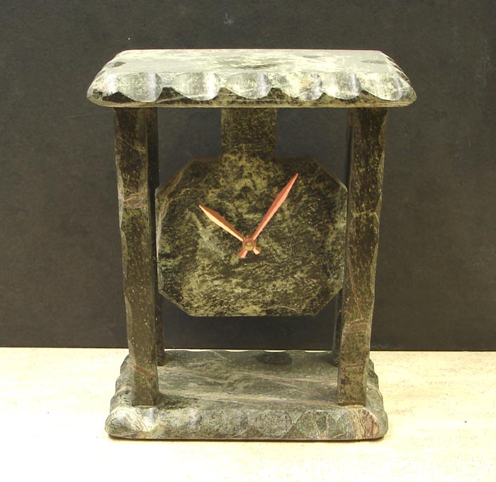 Crafted from Indian Marble, this stone mantel clock features a medalion face